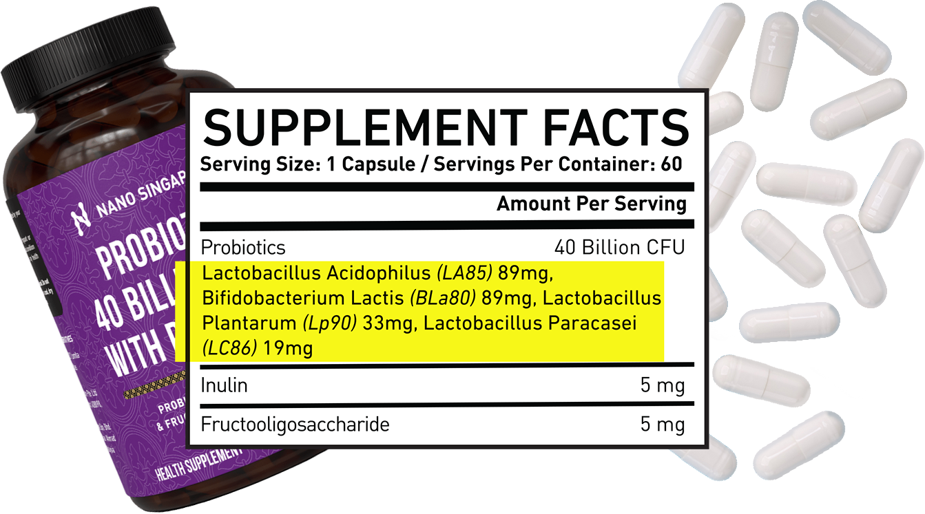 Not all probiotics work the same. Certain strains target specific needs, from improving digestion to boosting immunity or reducing bloating. Nano Singapore Probiotic 40 Billion CFU contains 4 clinically studied strains to restore gut balance and support daily wellness.